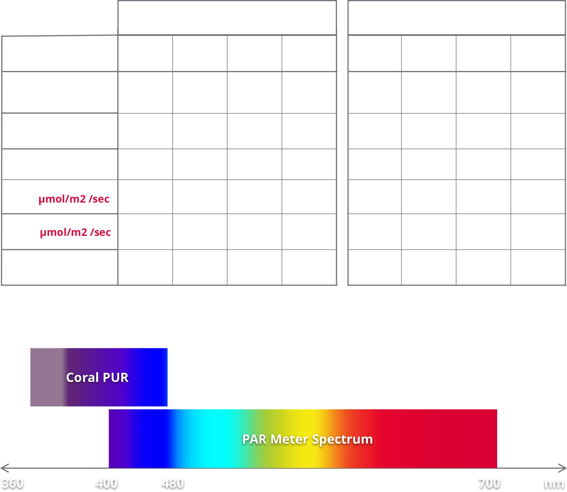 Using PAR measurements only to determine light quality or compatibility of a specific light unit for coral photobiology can be misleading. The PAR measurement was developed to measure the Photosynthetic Active Radiation of plants that is within the visible light region (400 -700 nm).