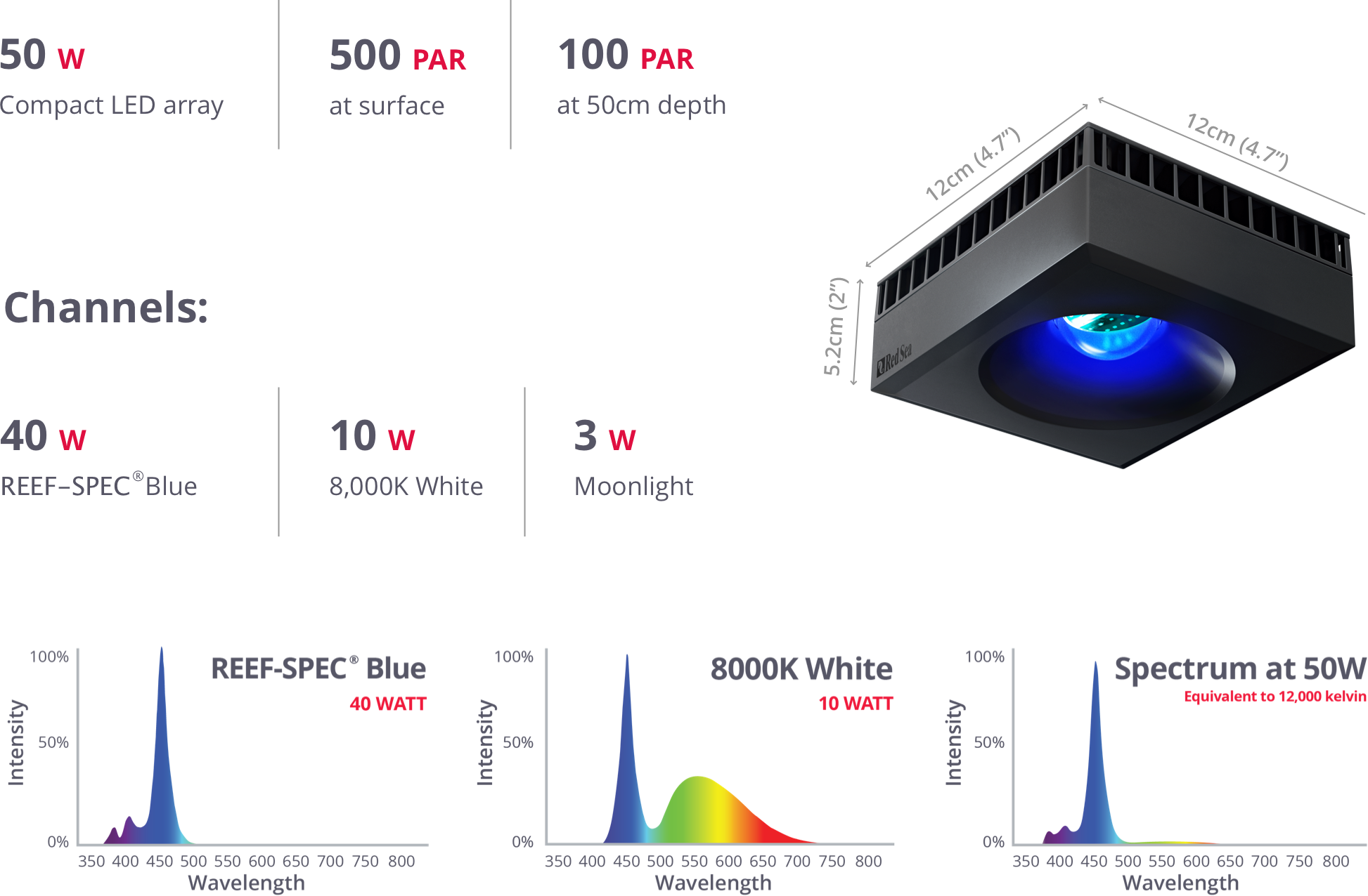 In addition, a separate dedicated 3W moonlight channel provides low levels of light for reef-safe night-time viewing.